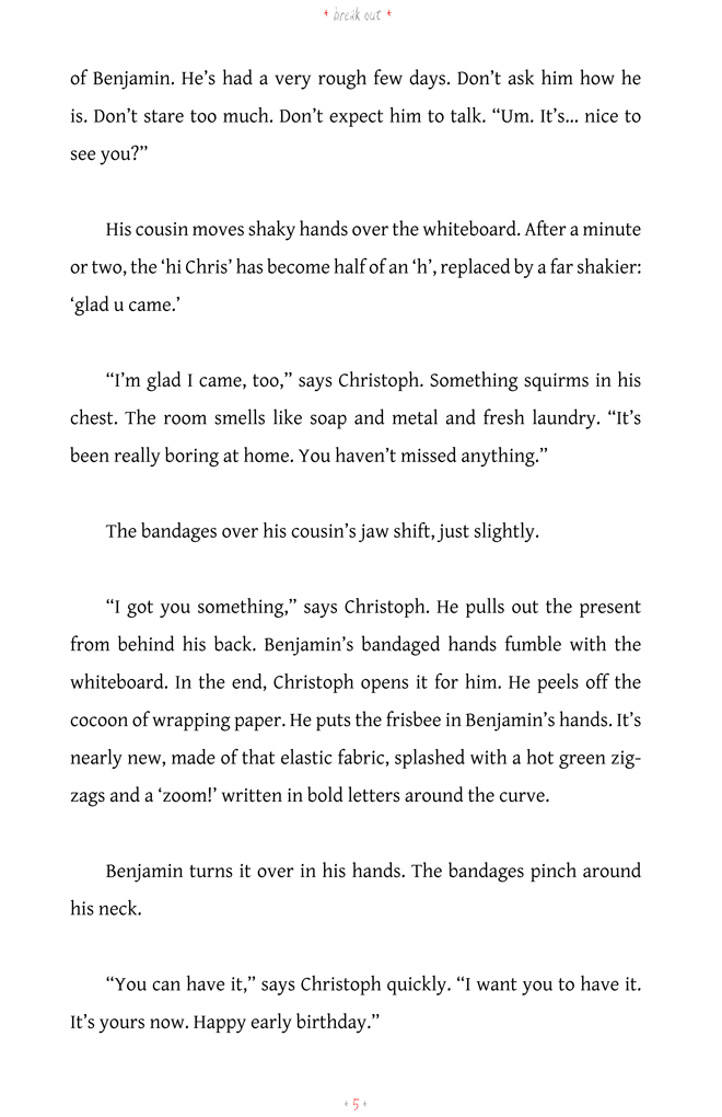 Christoph visits his cousin Benjamin in the hospital, apologetic. Christoph feels responsible for what happened, his body buzzing with guilt – even if everyone tells him it's only a bad break out.