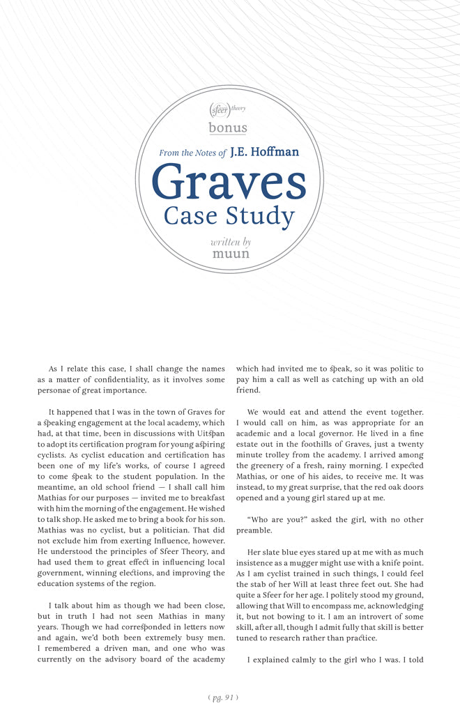Features a book exclusive extra short story: "From the Notes of J.E. Hoffman, Graves Case Study." The peculiar case report documenting a boy who failed to learn the limits of his own sfeer, and the people who are forced to suffer him.