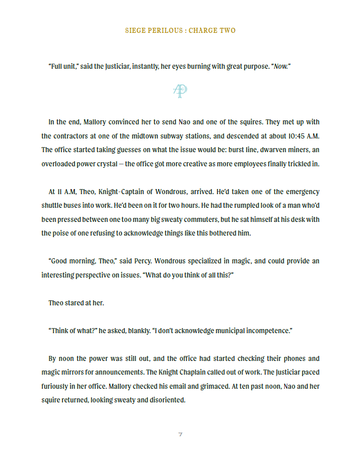 Among the Knights of Peace in Avalon, there are many divisions: Siege Luminous deals with covert ops, Siege Wondrous with magical propriety, and Siege Glorious handles the general hero business... but in a modern fantasy city that serves as the intersection of thirteen magical realms, there is one division that focuses on peace between the realms: Siege Perilous.