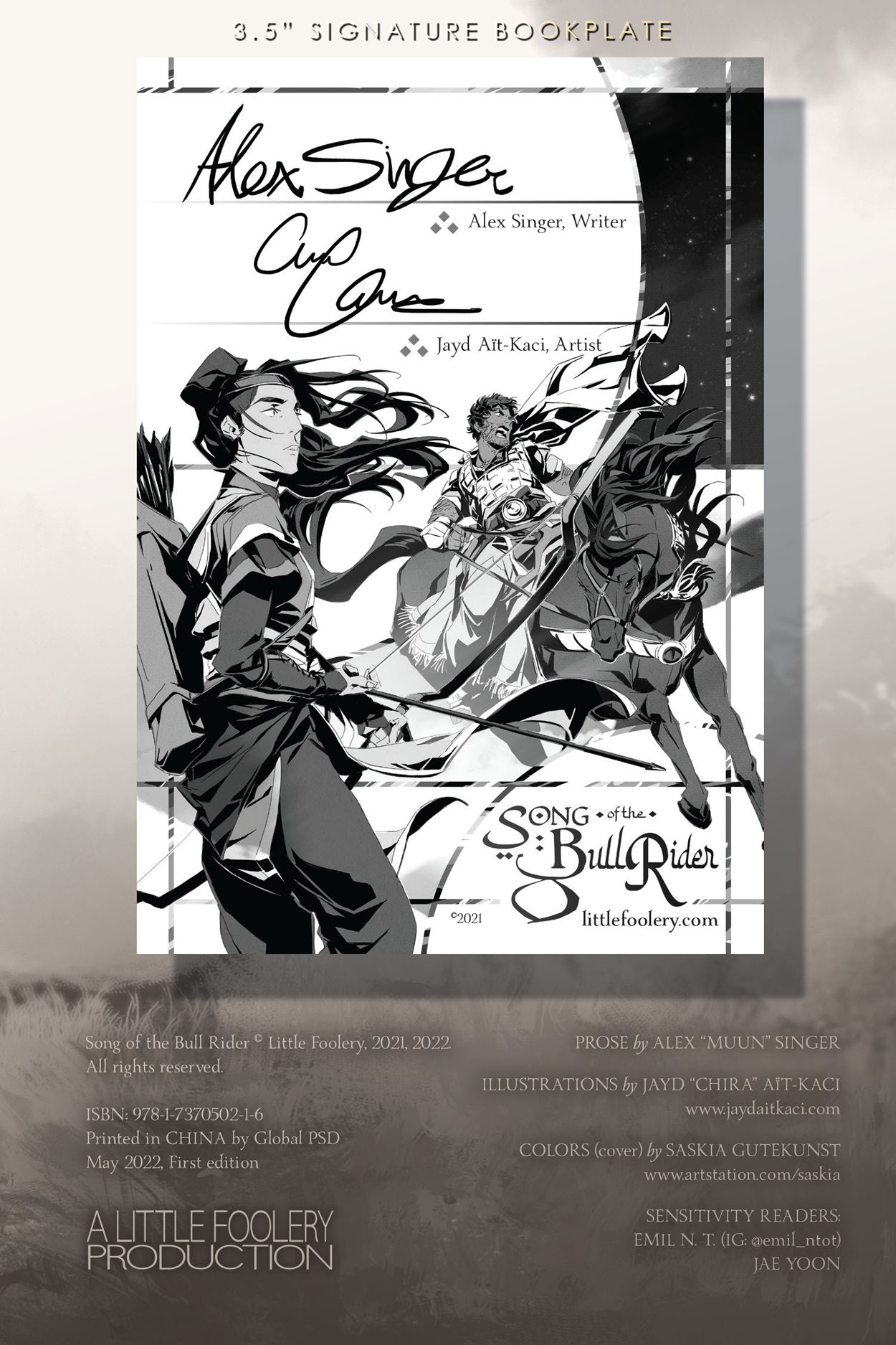 Also available is an illustrated 3.5 x 5" author signature bookplate.